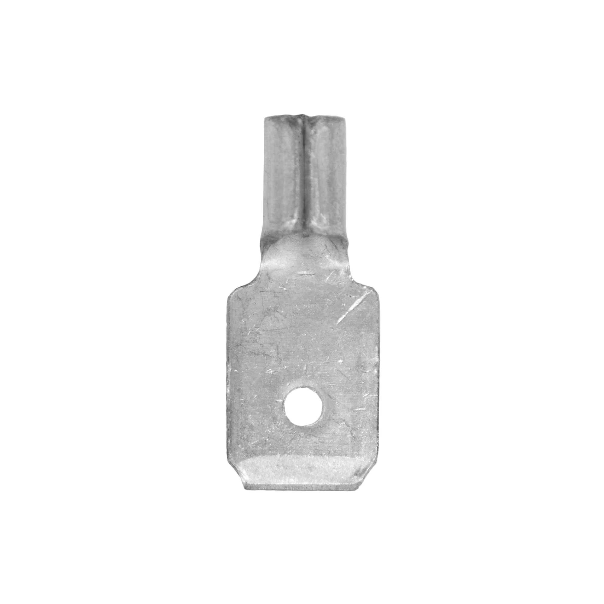Неизолированный наконечник быстрого соединения (контактный разъем – вилка) предназначен для оконцевания предварительно зачищенных от изоляции медных или алюминиевых проводов и их присоединения к медным клеммам, шинам, зажимам. Материал контактной части – электротехническая медь. Луженое покрытие внешних и внутренних поверхностей с использованием висмута защищает от коррозии и увеличивает проводимость защитного слоя. Сечение провода – 1.5–2.5 мм². Номинальный размер соединителя – 4.8×0.8 мм².