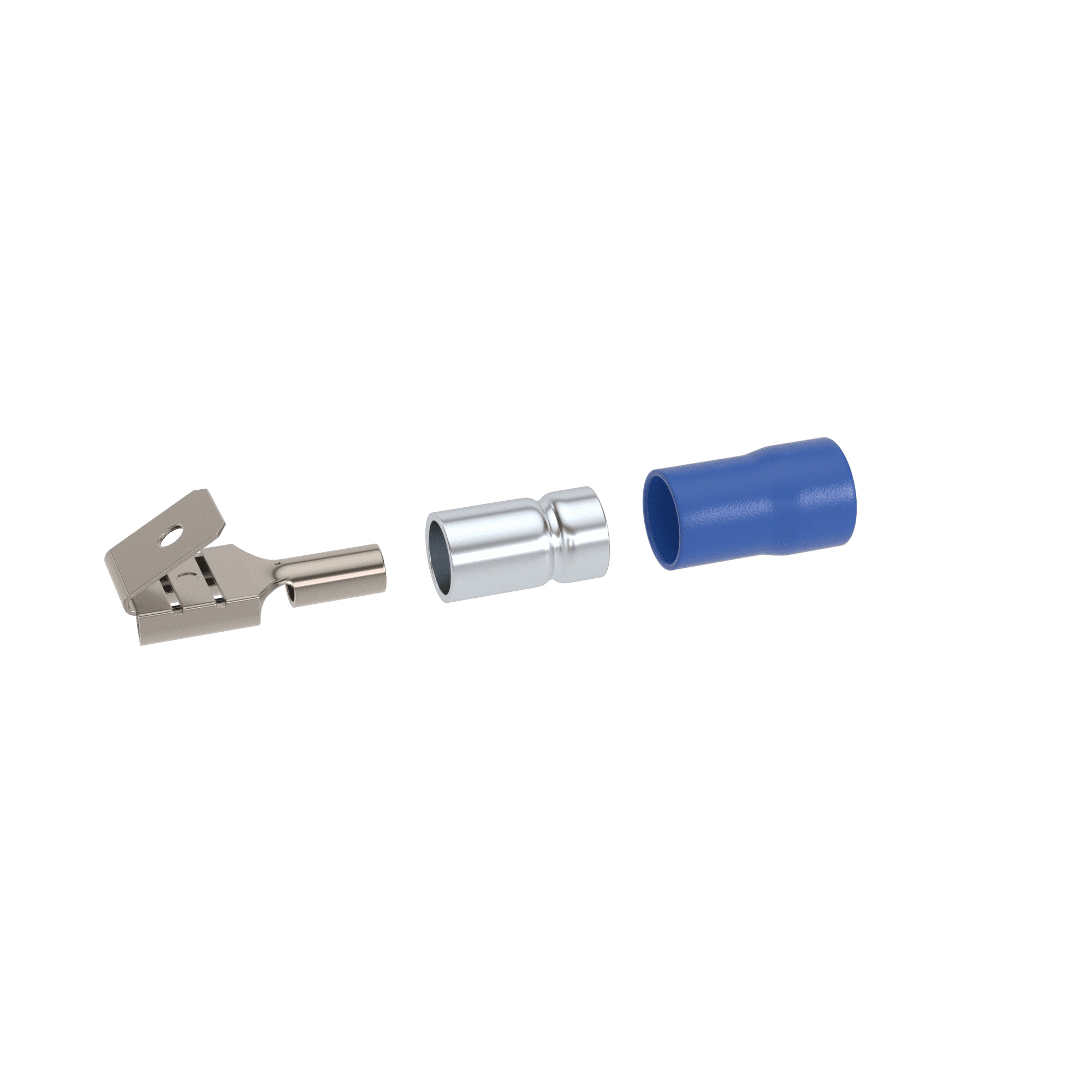 Предназначен для оконцевания медных/алюминиевых многопроволочных жил кабелей/проводов в электрических цепях переменного/постоянного тока напряжением до 600 В. Контактная часть выполнена из высококачественной меди марки М1. Лужение исключает образование гальванической пары. Внутренняя часть гильзы имеет радиальные насечки, повышающие плотность контакта. Изоляция из ПВХ выдерживает температуру до 85 ⁰C. Класс горючести - V0, стандарт UL 94. Двойная гильза обеспечивает наилучший электрический контакт и повышает виброустойчивость соединения. Рекомендованы для регионов с повышенной сейсмической активностью и на производственных объектах. Цвет - синий. Сечение: 1,5-2,5 мм2. Размер клеммы 6.3×0,8 мм. Длина лопатки - 8 мм. Форма контактной части - "мама/папа".
