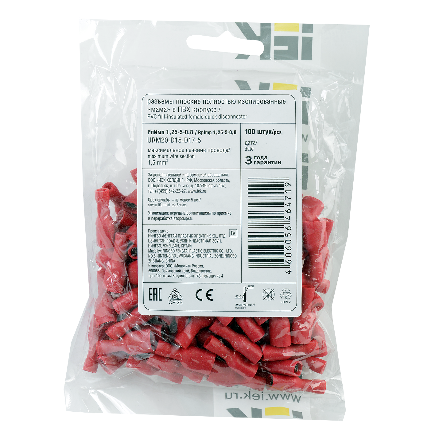 Разъем РпИмп 1,25-5-0,8 плоский (100шт/упак) IEK