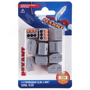 Клемма универсальная СМК 222-413, 3-проводная серая 0,08-2,5 4 кв мм, 10 шт, REXANT