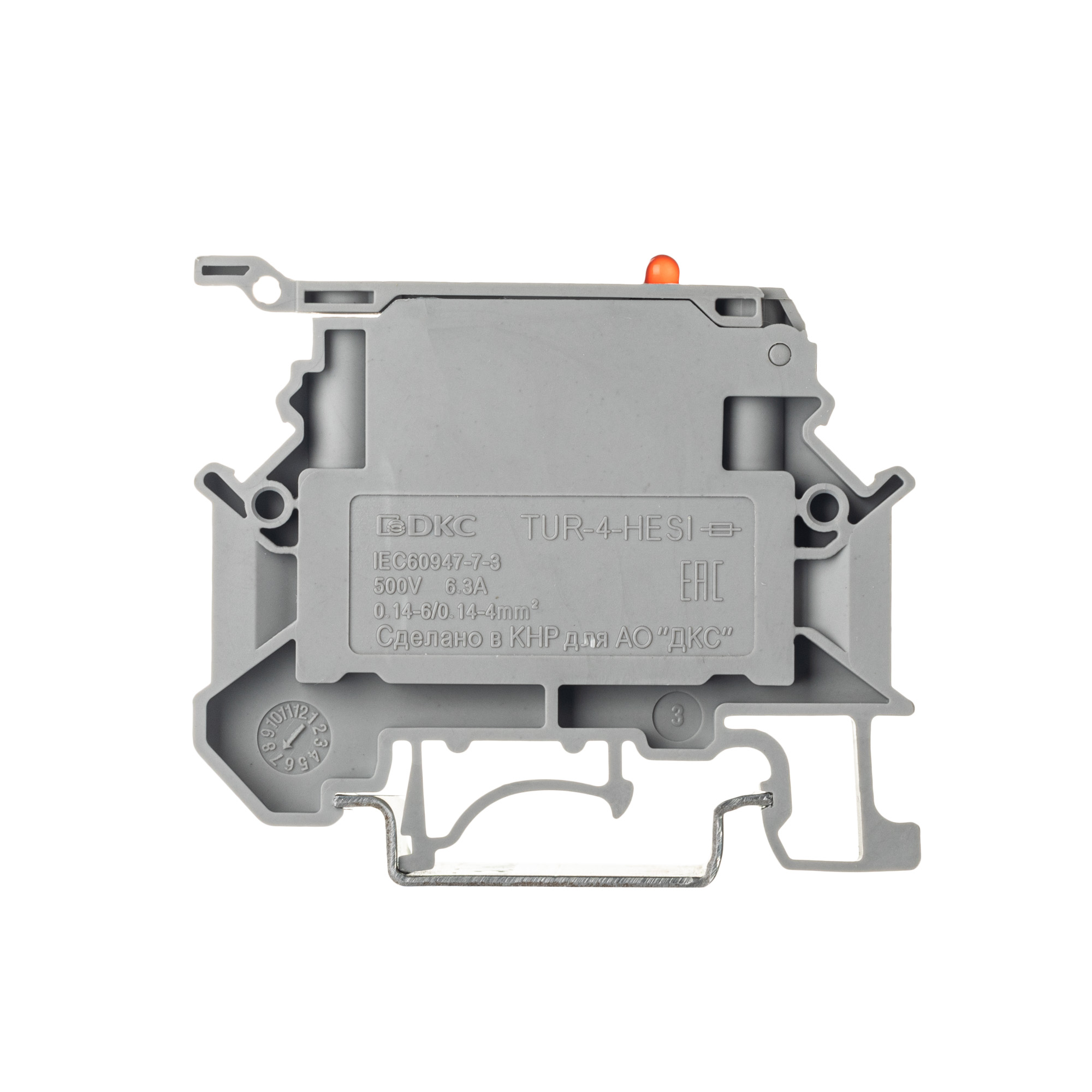 Клемма для предохранителя, винтовой зажим, 2 точки подключения, индикация 250В, 4 кв.мм, серая