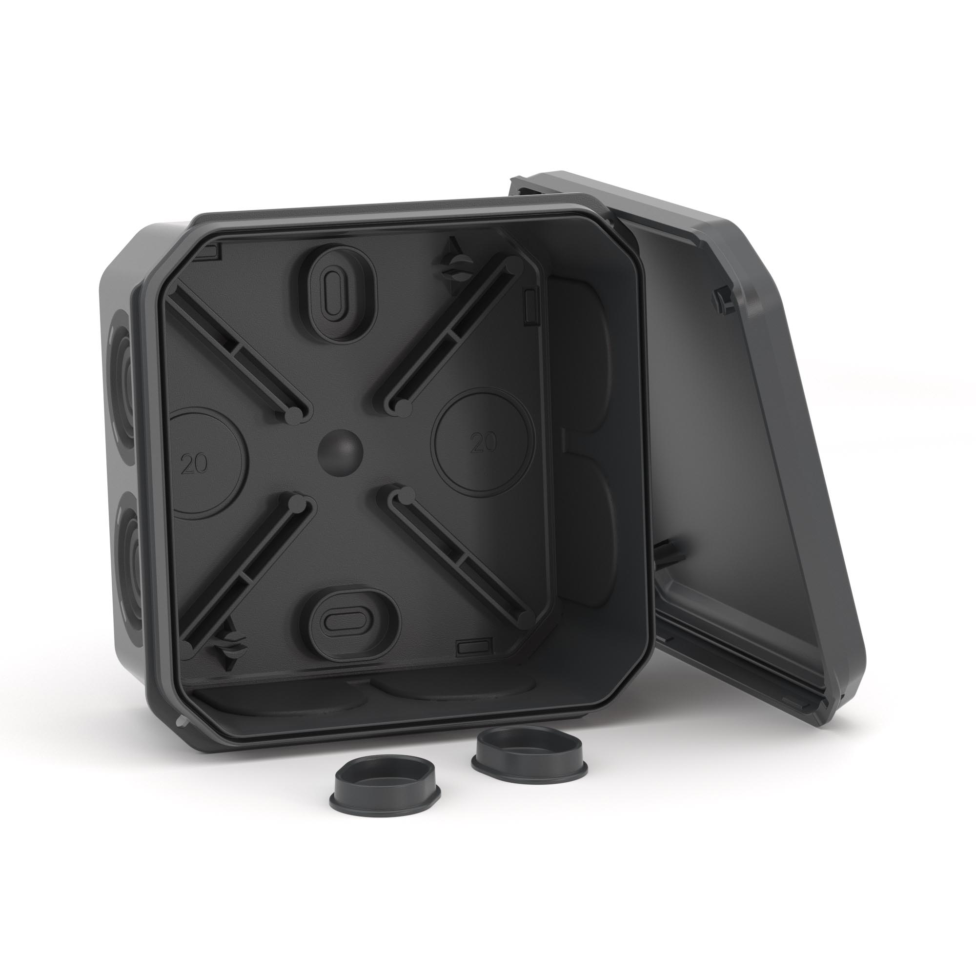 Коробка ответвительная с 8+2 кабельными вводами д.20/20мм,IP55,85х85х40мм, черный
