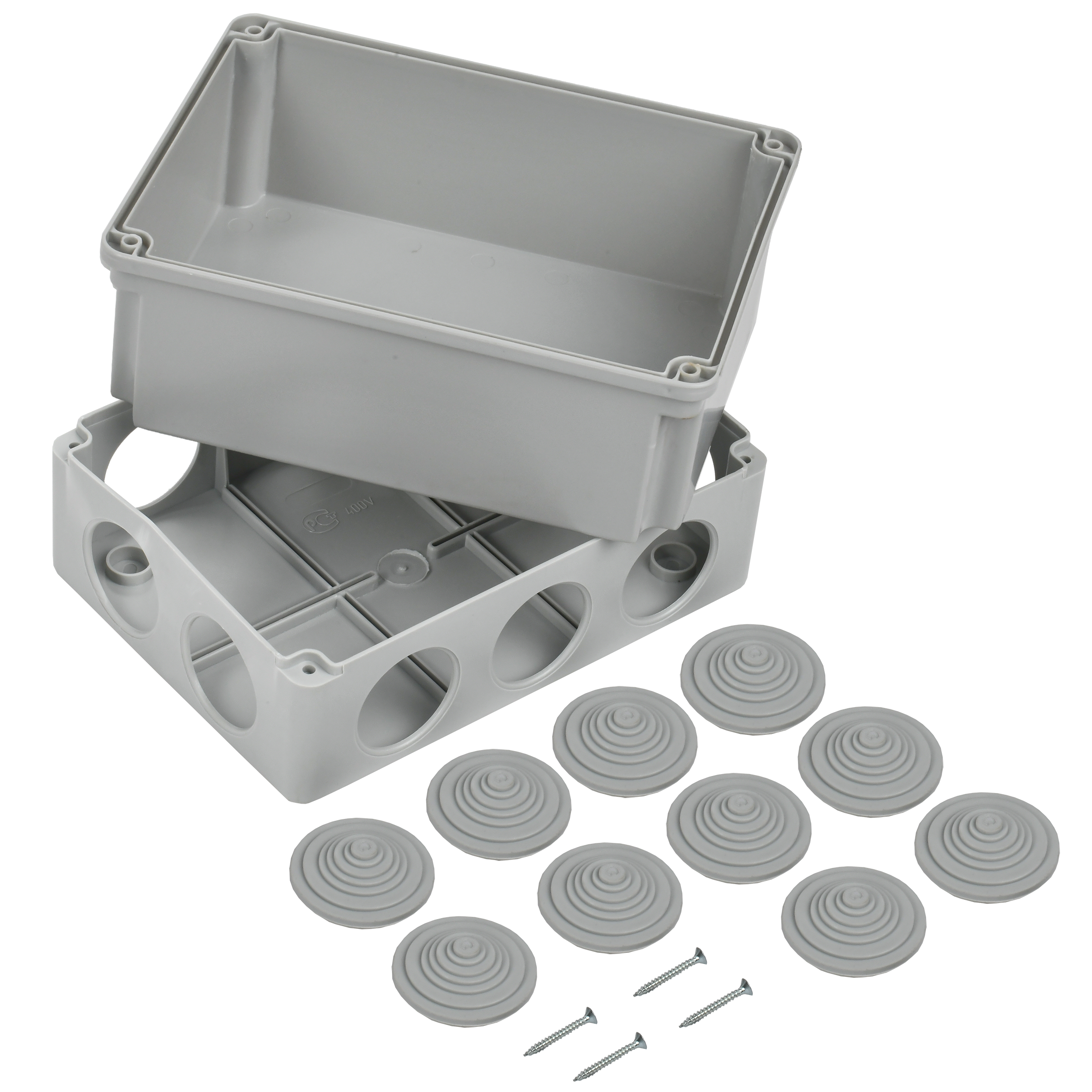 Коробка распаячная КМ41245 для открытой проводки безгалогенная (HF) 190х140х120мм IP44 10 гермовводов серая IEK