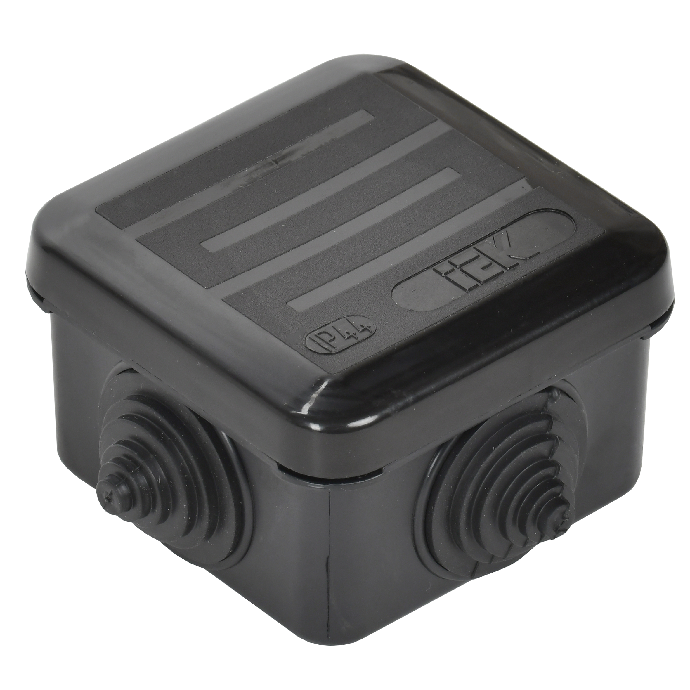 Коробка распаячная КМ41236 для открытой проводки с защелкивающейся крышкой безгалогенная (HF) 70х70х40мм IP44 4 гермовводов черная (RAL 9005) IEK