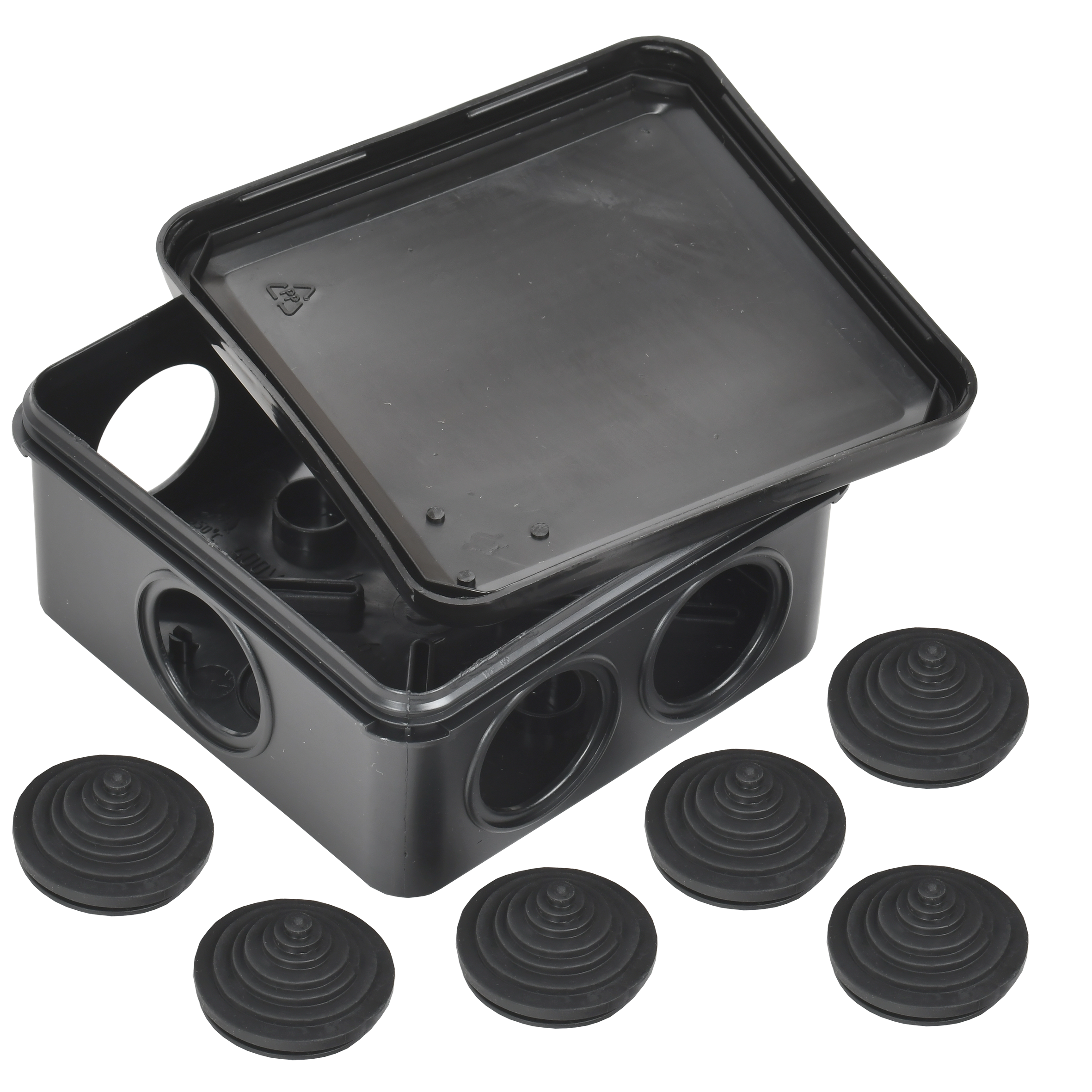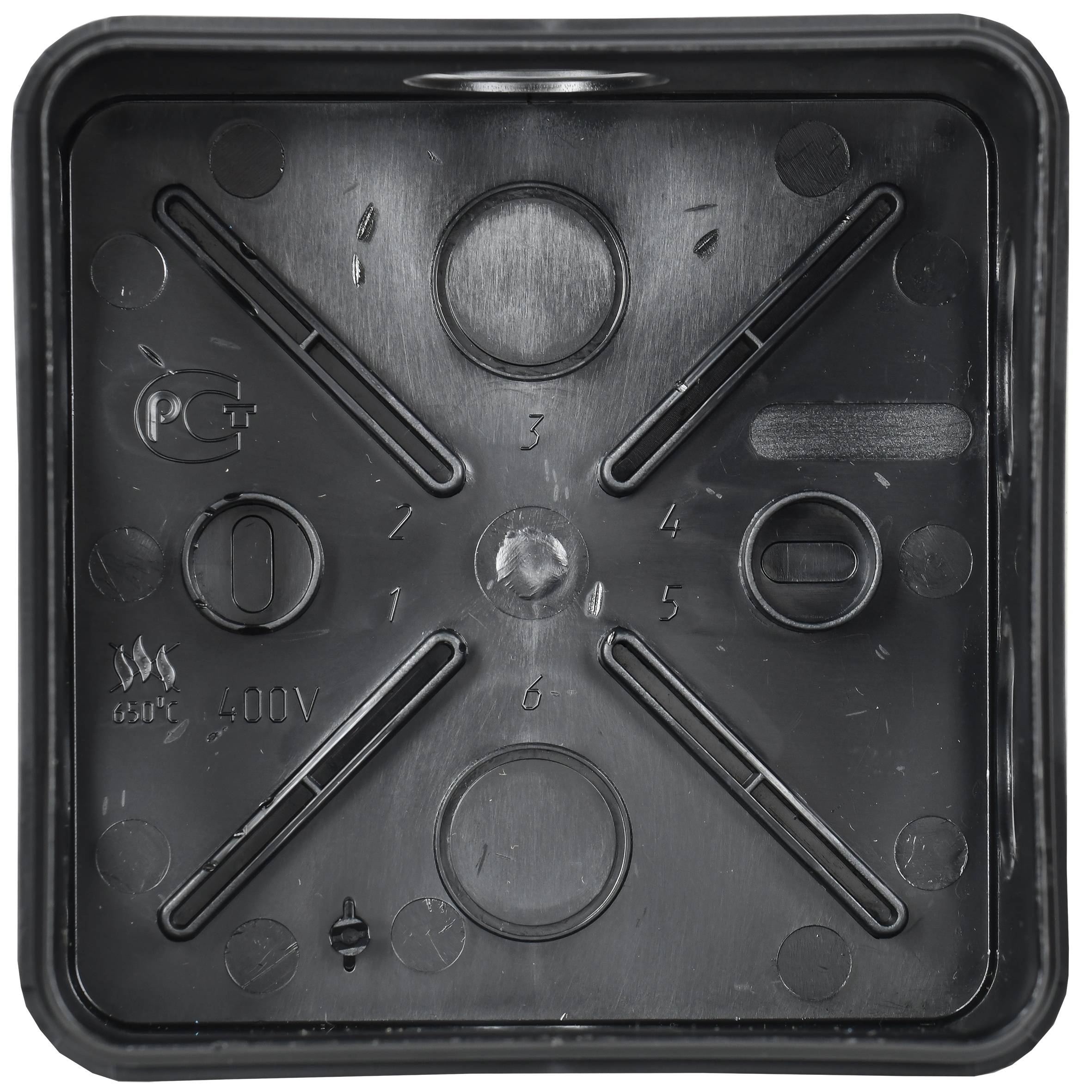 Коробка распаячная КМ41255 для открытой проводки с защелкивающейся крышкой безгалогенная (HF) 100х100х50мм IP44 6 гермовводов черная (RAL 9005) IEK