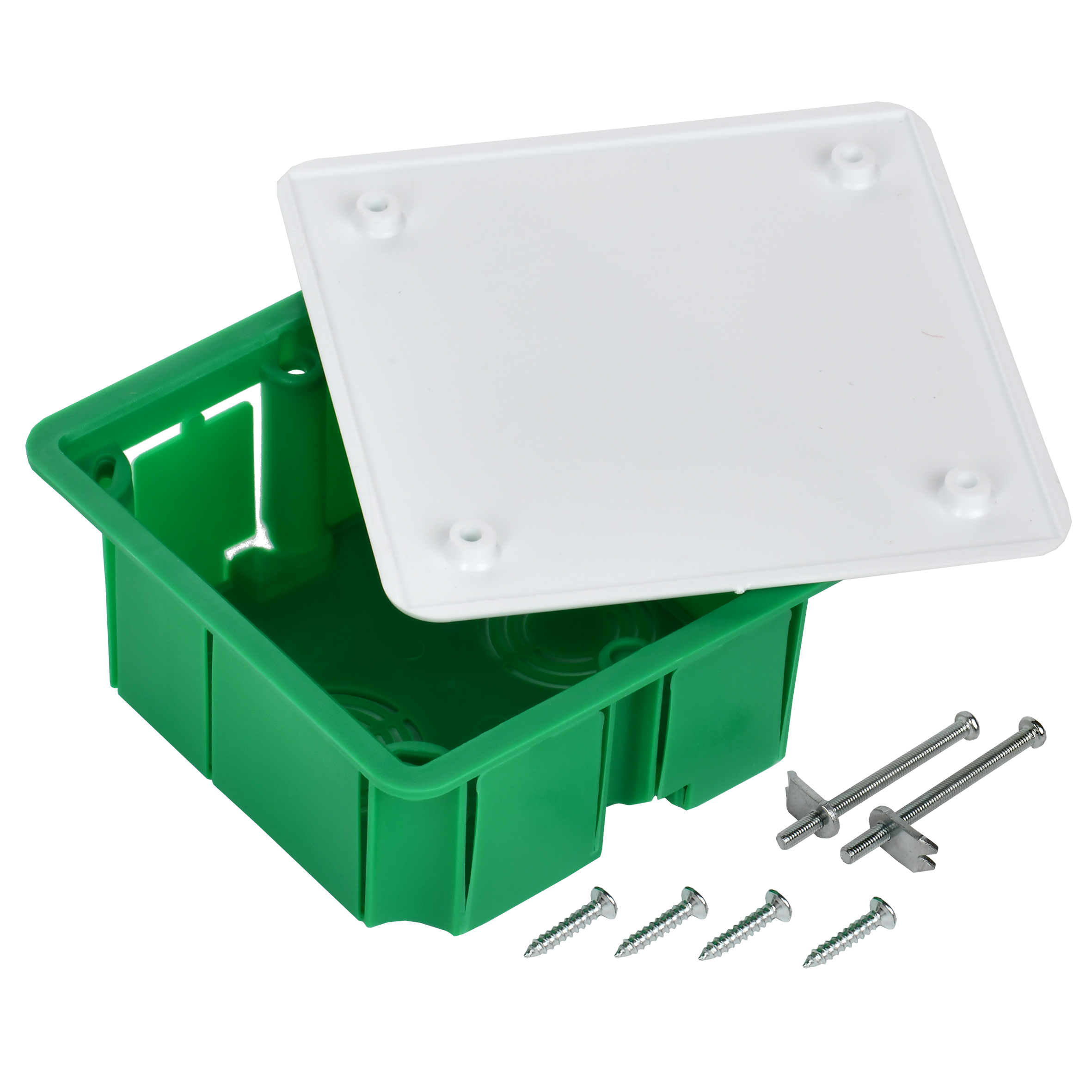 Коробка распаячная КМ41021 для полых стен безгалогенная (HF) 92х92х45мм с саморезами металлическими лапками и крышкой IEK