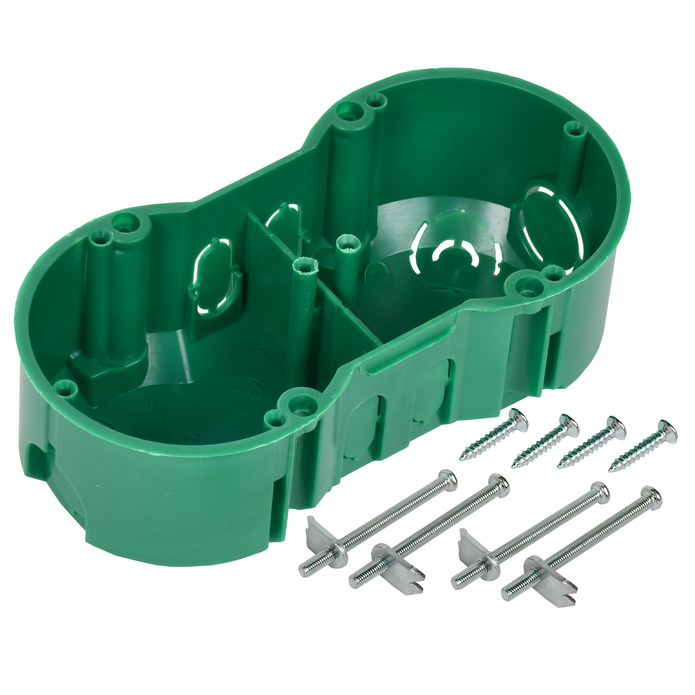 Коробка установочная КМ40023 двухместная для полых стен безгалогенная (HF) 141х70х45мм с саморезами и металлическими лапками IEK