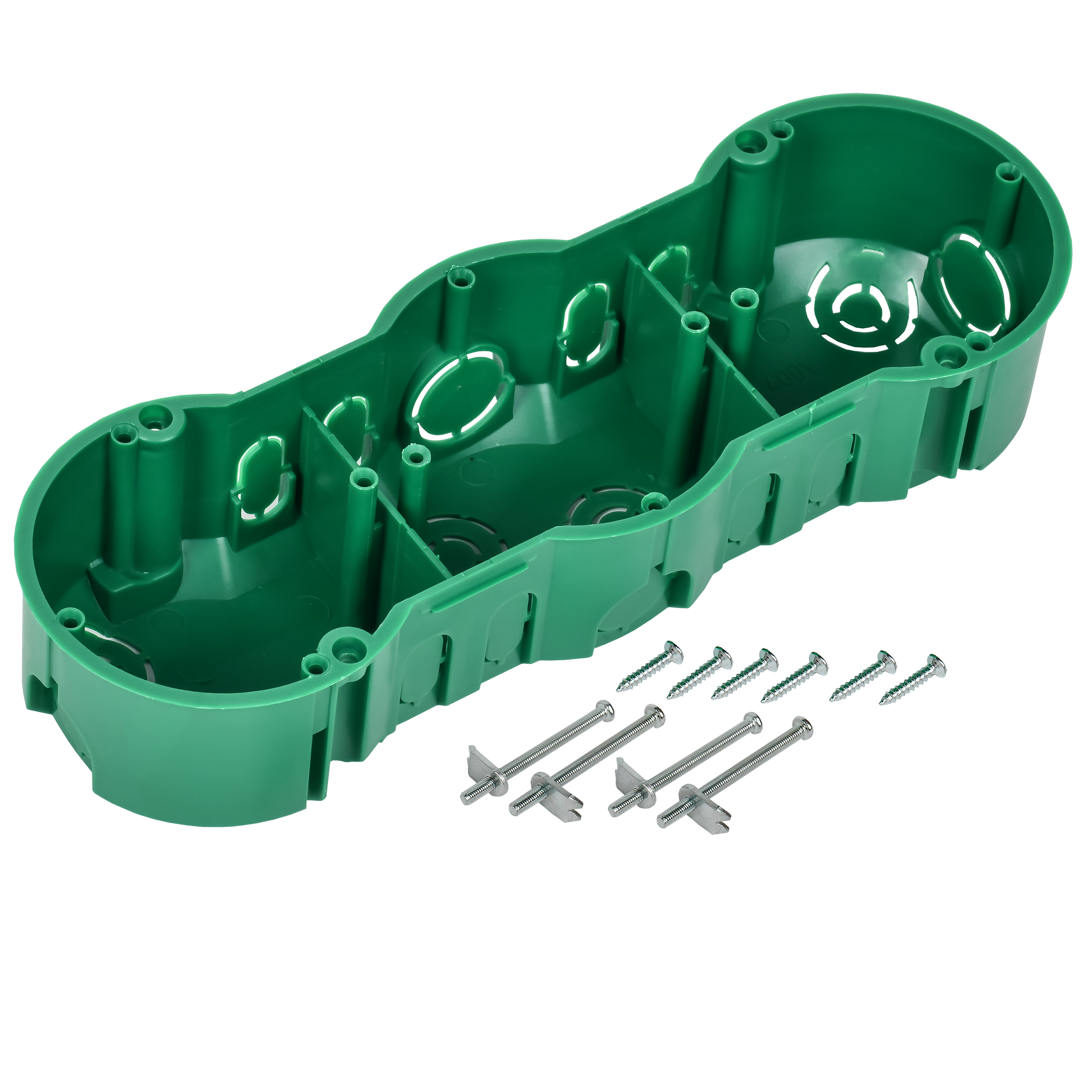 Коробка установочная КМ40024 трехместная для полых стен безгалогенная (HF) 212х70х45мм с саморезами и металлическими лапками IEK