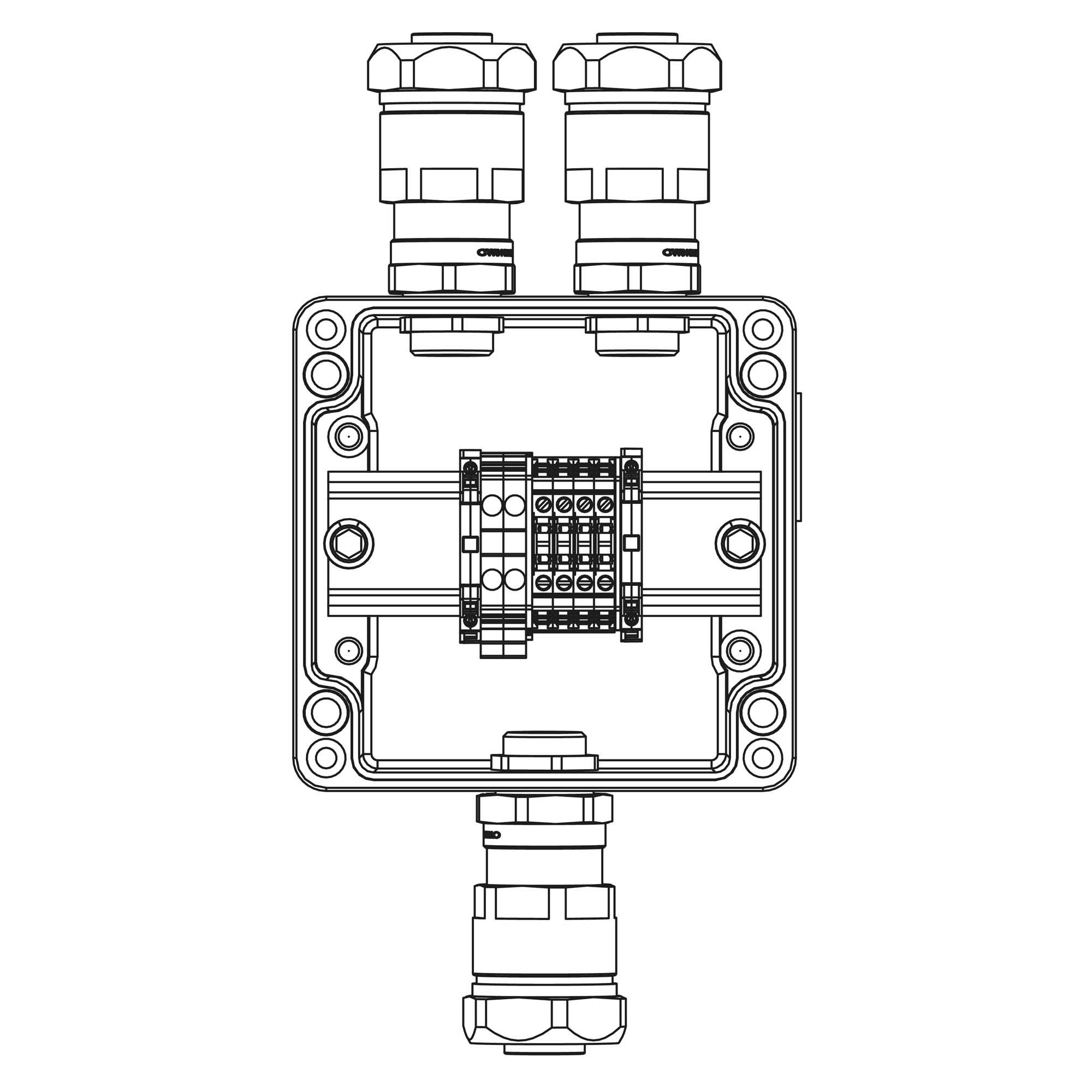 Взрывозащищенная клеммная коробка из алюминия TBE-A-12-(2xCBC.2-2xCBC.2(i)-2xTEO.2)-2xANP22BMB(A)-1xANP22BMB(C)1Ex e IIC Т5 Gb / Ex tb IIIC T95°C Db IP66