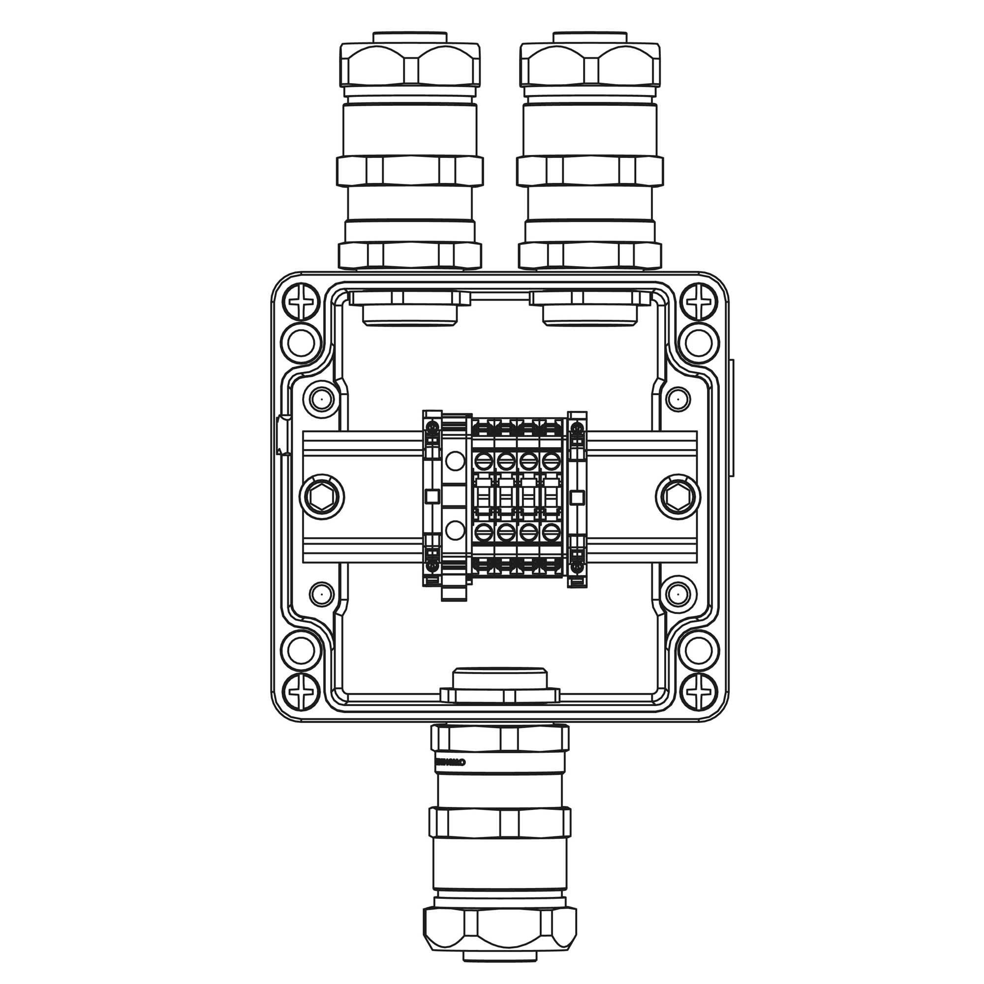 Взрывозащищенная клеммная коробка из алюминия TBE-A-12-(4xCBC.4-1xTEO.4)-2xANP22CMB(A)-1xANP22CMB(C)1Ex e IIC Т5 Gb / Ex tb IIIC T95°C Db IP66
