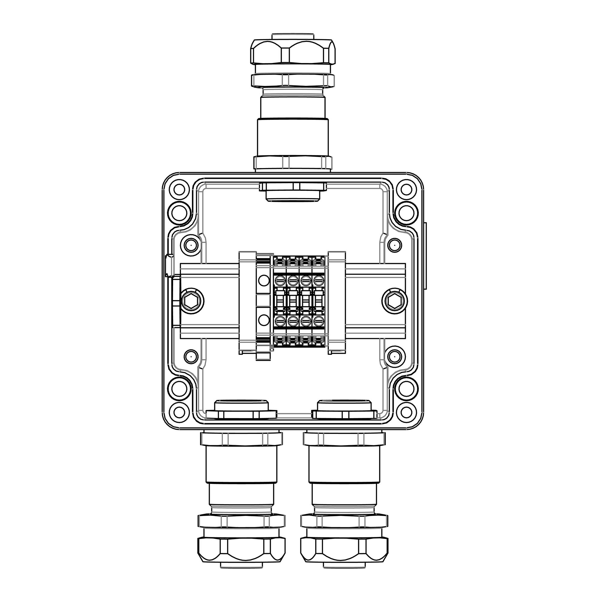 Взрывозащищенная клеммная коробка из алюминия TBE-A-12-(4xCBC.4-1xTEO.4)-2xKAEPM3MHK-20(A)-1xKAEPM3MHK-20(C)1Ex e IIC Т5 Gb / Ex tb IIIC T95°C Db IP66