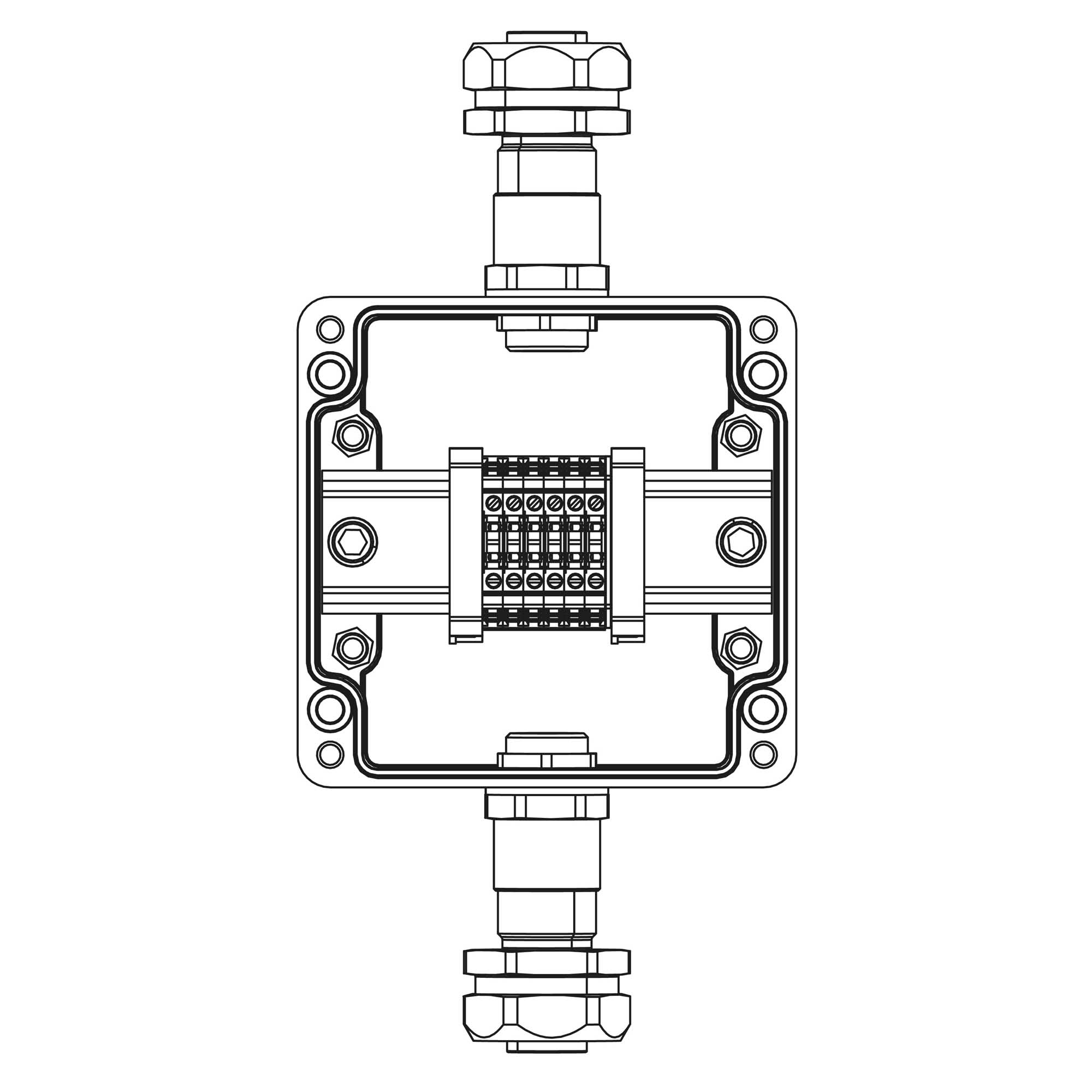 Взрывозащищенная клеммная коробка из полиэстера TBE-P-03-(6xCBC.2)-1xKAEPM2MHK-20(A)-1xKAEPM2MHK-20(C)1Ex e IIC Т5 Gb / Ex tb IIIC T95°C Db IP66/КЗ