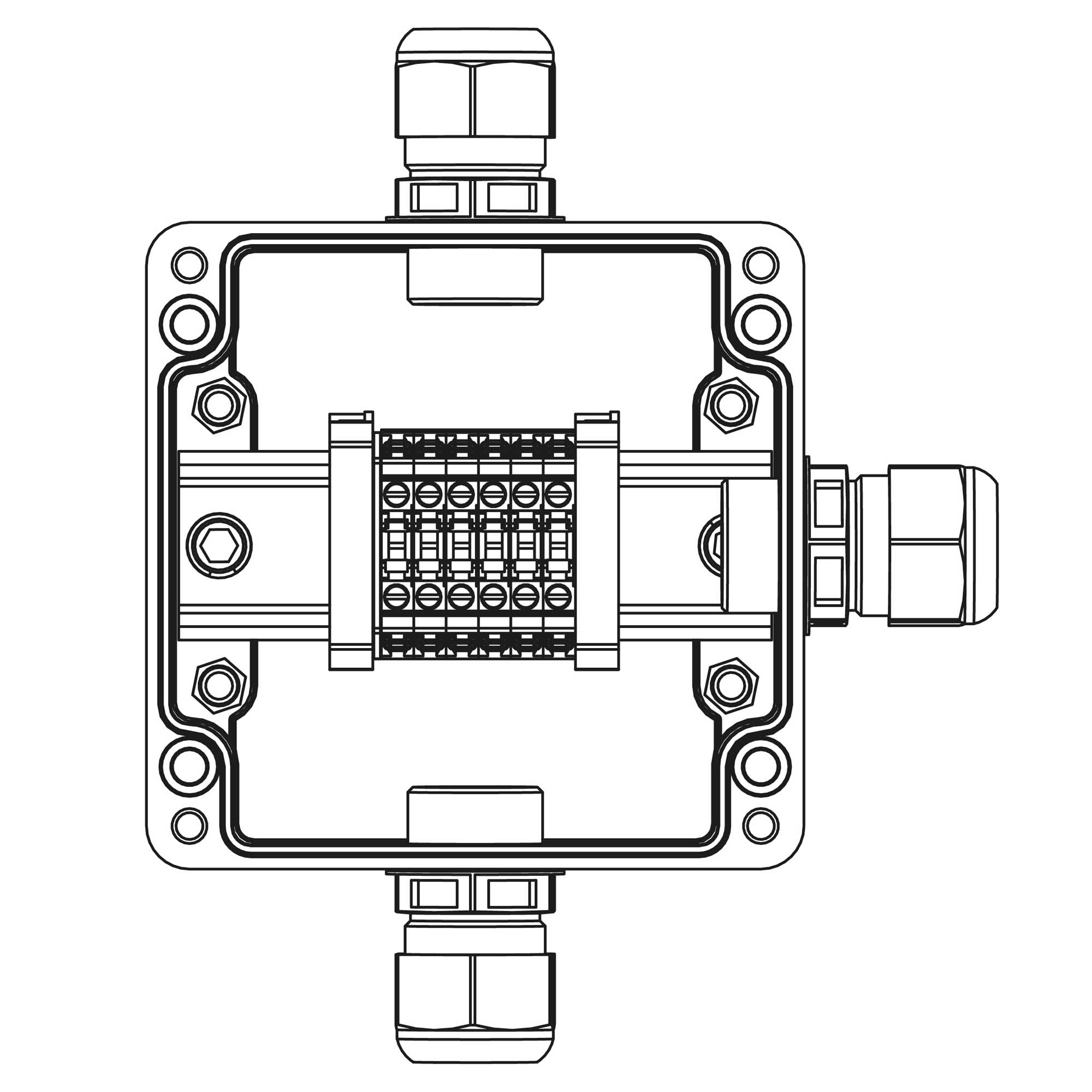 Взрывозащищенная клеммная коробка из полиэстера TBE-P-03-(6xCBC.4)-1xPACMP(A)-1xPACMP(C)-1xPACMP(D)1Ex e IIC Т5 Gb / Ex tb IIIC T95°C Db IP66