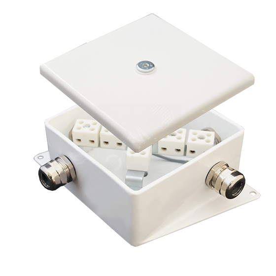 Коробка монтажная огнестойкая. Предназначена для соединения проводников электрических сигнальных и контрольных цепей систем обеспечения пожарной безопасности, а также для монтажа электропроводок. Корпус коробки целиком изготовлен из стали 2,5-3 мм. Имеет двойную защиту от коррозии (гальваническое покрытие и покраска). Крышка прижимается к корпусу через силиконовую прокладку. Винт крепления крышки снабжен уплотняющей тарельчатой шайбой с фторопластовым покрытием. Внутри корпуса коробки установлены керамические клеммные колодки, обеспечивающие соединение под винт, и клемма заземления. В боковых стенках устанавливаются металлические кабельные вводы. Крепление коробки к элементам конструкций рекомендуется осуществлять на приварные пластины с применением гаек и винтов или с помощью саморезов и металлических дюбелей.