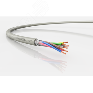 FLEXICORE® LiYCY–экранированные низкочастотные кабели управления с изоляцией и оболочкой из ПВХ с номинальным рабочим напряжением до 60В, максимальное пиковое рабочее напряжение-350В для кабелей с сечением 0,14 мм2, 500В для кабелей с сечение от 0,25 мм2 и выше (не для силовых цепей). Предназначены для управления и передачи сигнала для вычислительных устройств, электронных приборов управления и контроля,офисного оборудования, весов, для применения там,где востребованы экранированные кабели маленьких сечений с оптимальной защитой от воздействия электрических помех. Предназначены для использования в сухих и влажных помещениях. Кабели УФ стойкие по ГОСТ 20.57.406 п. 2.26. Стойкие к воздействию минерального масла по ГОСТ 25018. Соответствуют климатическому исполнению категории 1, 1.1, 2, 2.1, 3, 3.1, 4, 4.1, 4.2 по ГОСТ 15150,для стационарной установки и для ограниченно подвижного применения