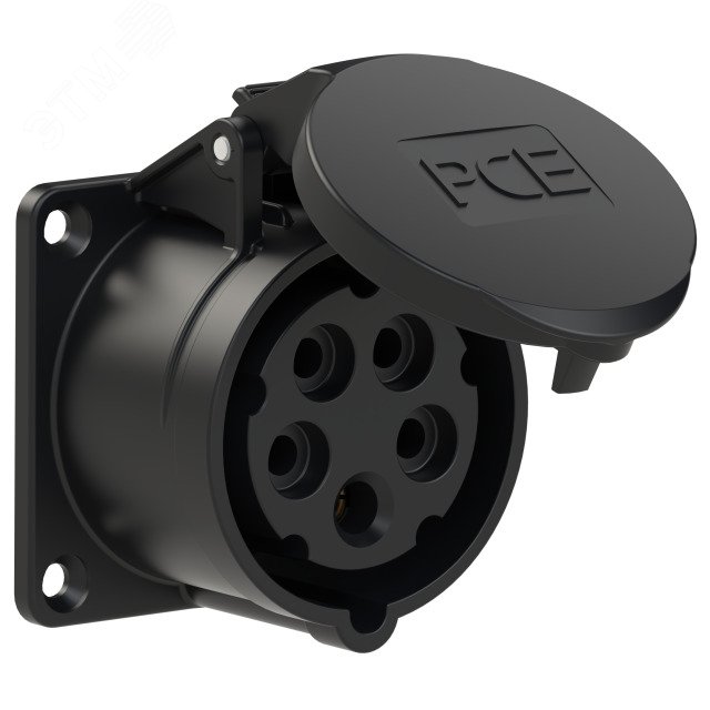 Розетка встраиваемая 16А/400V/3P+N+E/IP44, черная, фланец 70x70