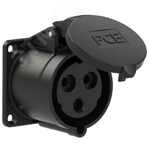 Розетка встраиваемая 32А/230V/1P+N+E/IP44, черная, фланец 70x70, безвинтовое подключение