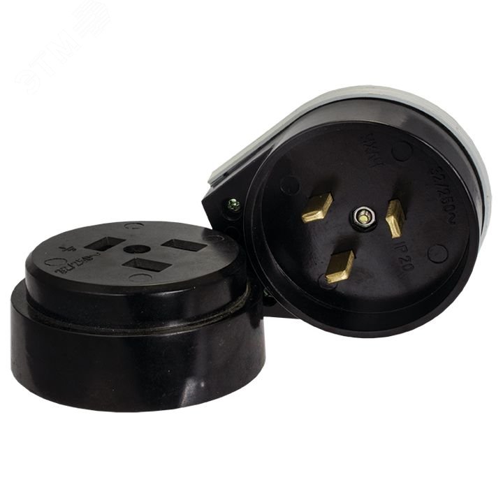 Разъем РШ-ВШ 32А 250В 2P+PE (ОУ) карболитовый черный Simple