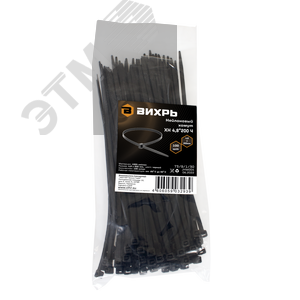 Хомут нейлоновый ''Вихрь'' (стяжка) — соединительный элемент, применяется для крепления и фиксации различных конструкций, систем монтажа, электропроводки и многого другого. Может использоваться при маркировке электромонтажных кабелей, т.к хомут одновременно выполняет функции крепежного изделия и стяжки для электропроводов. Хомуты являются достаточно быстрым и удобным способом крепления и бандажирования, также их можно использовать как в помещении, так и за его границами. Преимущества нейлоновых хомутов - Устойчив к ультрафиолету. Температурный диапазон эксплуатации от -20 С до +50 С.Эластичность Разрывопрочность кг/см3>200. Поставляется пакетами по 100 шт.