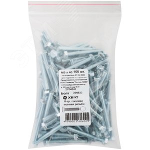 Болт DIN933 М5х40 шестигранная голова полная резьба оцинкованный (100 шт)