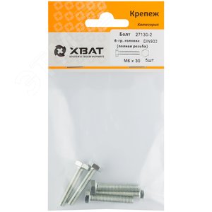 Болт DIN933 М6х30 шестигранная голова полная резьба оцинкованный (5 шт)