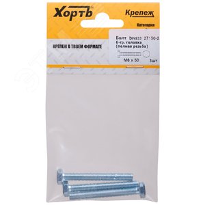 Болт DIN933 М6х50 шестигранная голова полная резьба оцинкованный (3 шт)