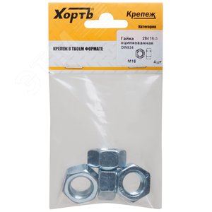Гайка DIN934 М16 шестигранная оцинкованная (4 шт)
