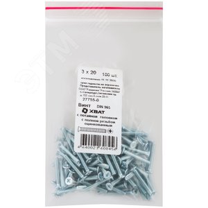 Винт DIN965 М3х20 потайная головка оцинкованный (100 шт)