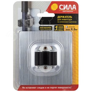 Держатель для инвентаря на силиконовом креплении 10х10 см нагрузка 25 кг хром серебристый СИЛА SSH10-S1S-12