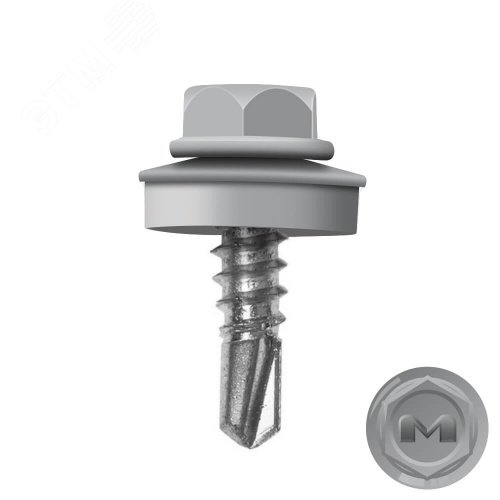 Саморез кровельный 5.5х19 по металлу RAL7004 сверло №3 шайба d=14мм с EPDM прокладкой