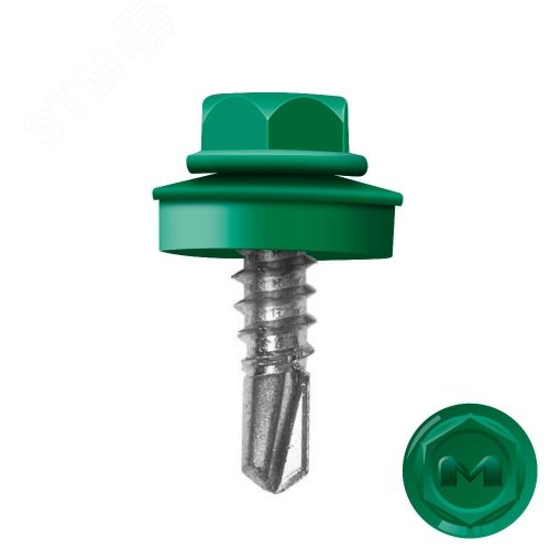 Саморез кровельный 5.5х25 по металлу RAL6020 сверло №3 шайба d=14мм с EPDM прокладкой