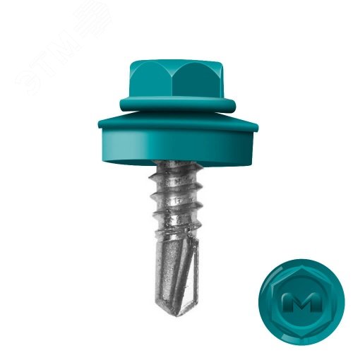 Саморез кровельный 5.5х25 по металлу RAL5021 сверло №3 шайба d=14мм с EPDM прокладкой