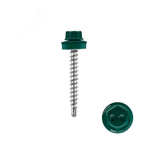 Саморез кровельный 4.8х50 RAL6005 сверло №1 шайба d=14мм с EPDM прокладкой