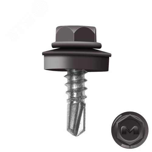 Саморез кровельный 5.5х19 по металлу RAL8019 сверло №3 шайба d=14мм с EPDM прокладкой