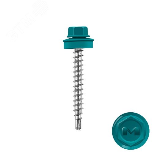 Саморез кровельный 4.8х50 RAL5021 сверло №1 шайба d=14мм с EPDM прокладкой