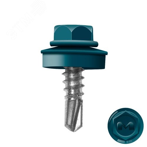 Саморез кровельный 5.5х19 по металлу RAL5020 сверло №3 шайба d=14мм с EPDM прокладкой