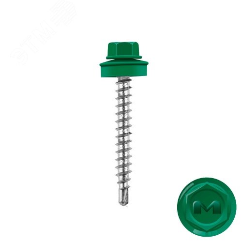 Саморез кровельный 4.8х29 RAL6029 сверло №1 шайба d=14мм с EPDM прокладкой