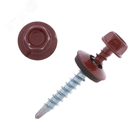 Саморез кровельный 5.5х19 по металлу RAL3009 сверло №3 шайба d=14мм с EPDM прокладкой