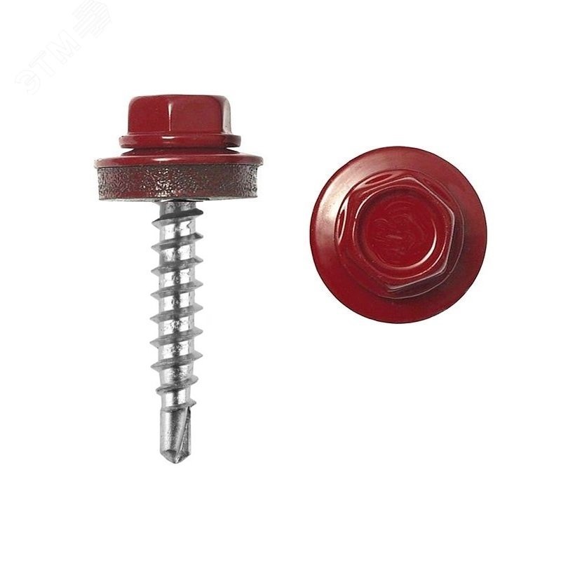 Саморез кровельный 5.5х25 по металлу RAL3005 сверло №3 шайба d=14мм с EPDM прокладкой