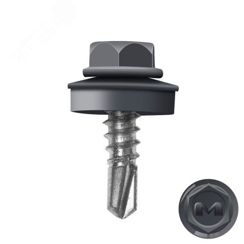 Саморез кровельный 5.5х19 по металлу RAL7016 сверло №3 шайба d=14мм с EPDM прокладкой