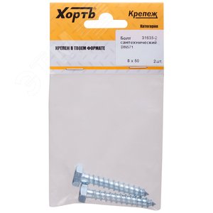 Шуруп DIN571 8х50 сантехнический, шестигранная головка (2шт)