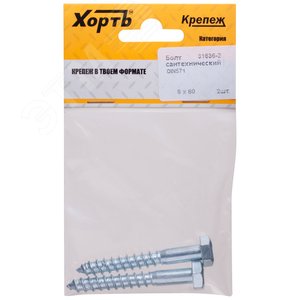 Шуруп DIN571 8х60 сантехнический, шестигранная головка (2шт)
