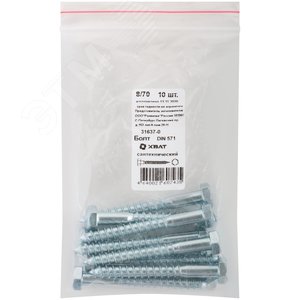 Шуруп DIN571 8х70 сантехнический, шестигранная головка (10шт)
