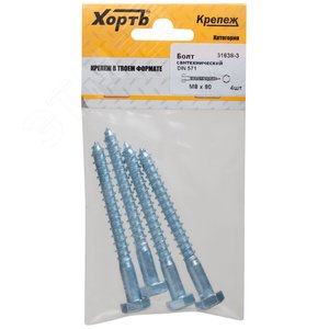 Шуруп DIN571 8х80 сантехнический, шестигранная головка (4шт)