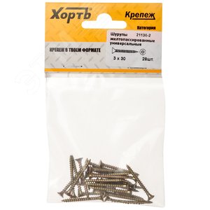 Шуруп универсальный 3х30 потайная головка, остроконечный, желтопассивированный (28шт)