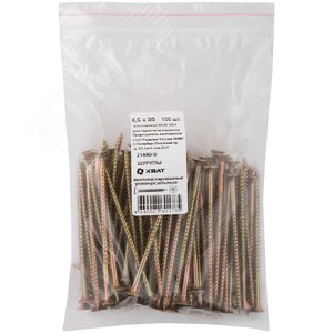 Шуруп универсальный 4,5х80 потайная головка, остроконечный, желтопассивированный (100шт)