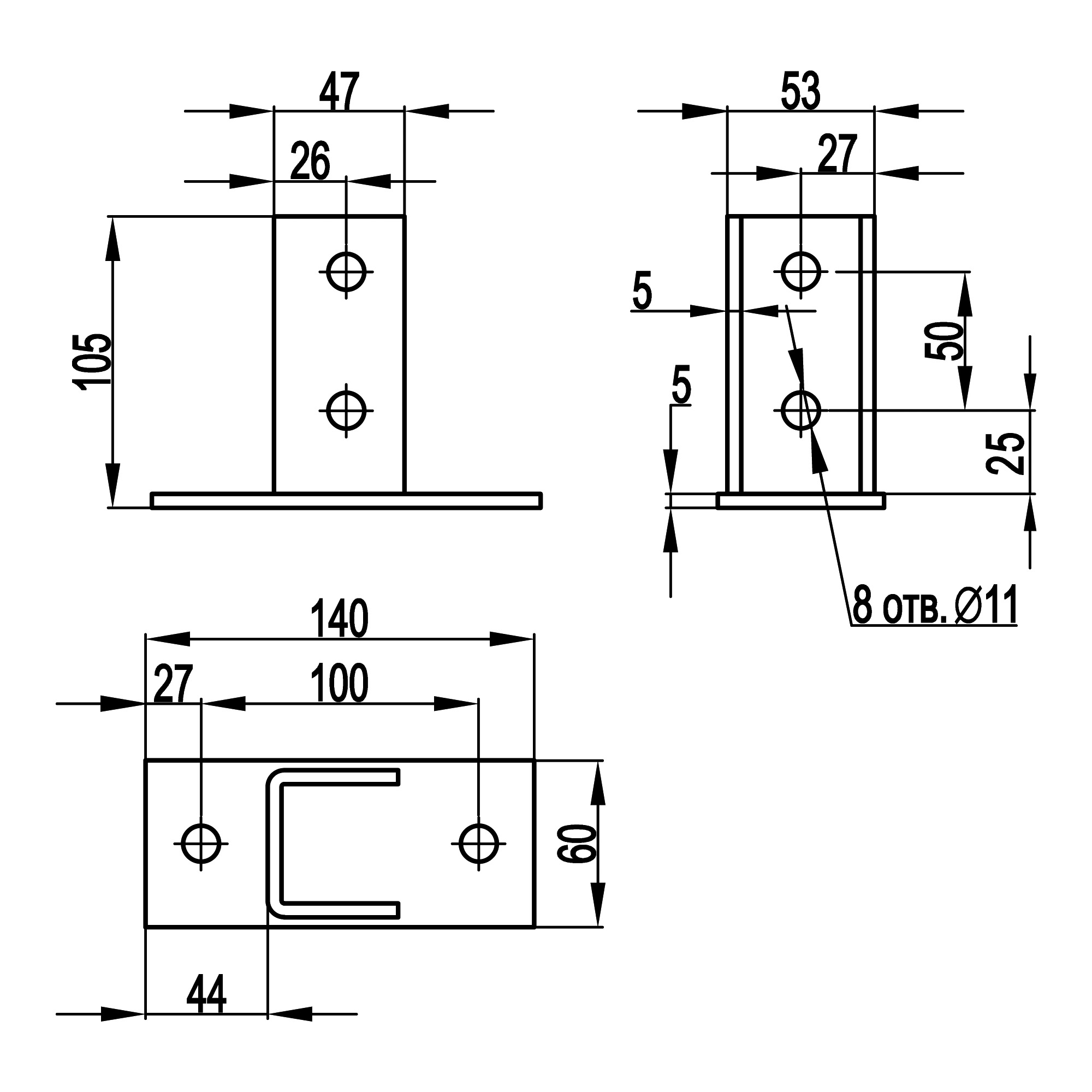 Крепление с площадкой 140х60мм для профиля BPM-41 , INOX 304