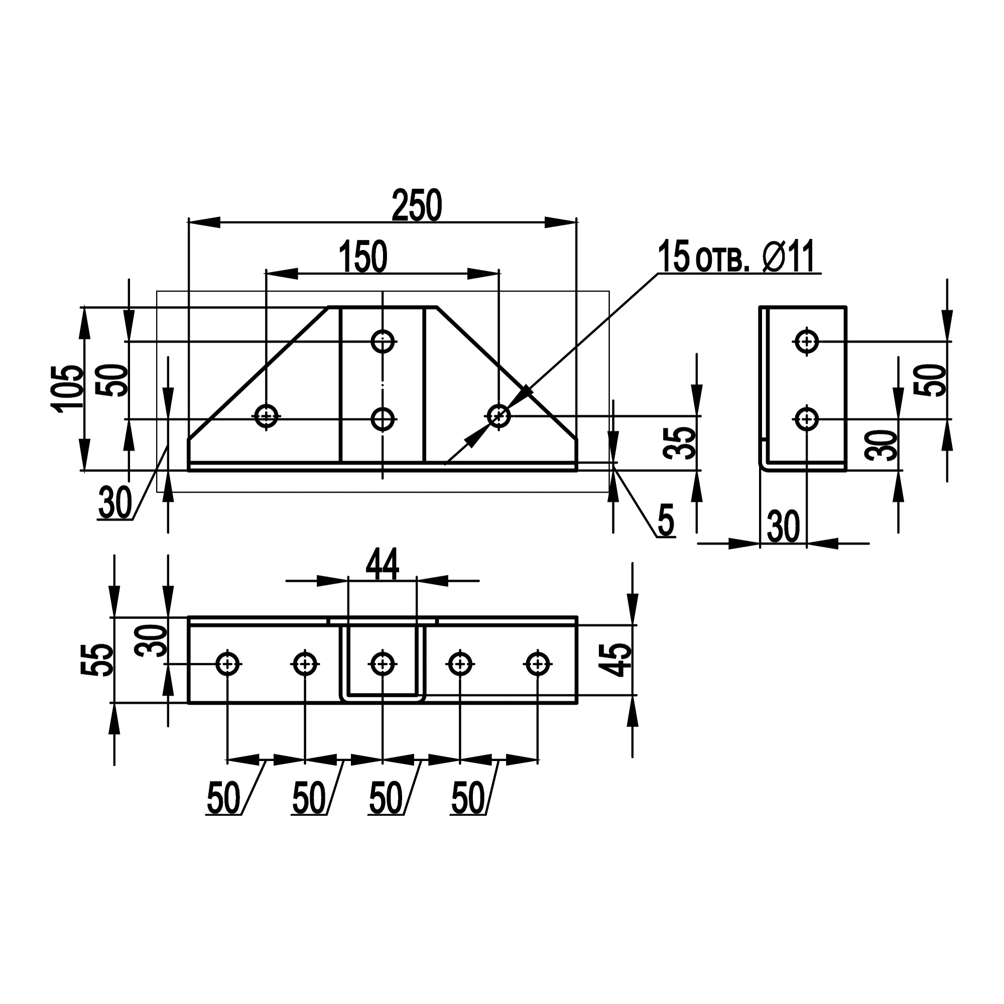 Крепление с площадкой 250х55мм для профиля BPM-41 , INOX 304