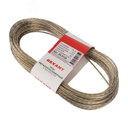 Стальной трос с полимерным покрытием, свивается из высокоуглеродистой стальной проволоки (латунированной с высоким содержанием углерода) и покрывается ПВХ, выдерживая перепады температуры от –60 до +110 градусов Цельсия. при этом не сказываются на эластичности троса. Диапазон температур от –40 до + 50 градусов Цельсия. Покрытие троса обеспечивает срок службы более 25 лет, при условии отсутствия механических повреждений покрытия. Пластикат, используемый для покрытия троса, является экологически чистым материалом и абсолютно безопасен для человека и животных. Выдерживает нагрузку от 800 до 45000 Н (от 80 кг до 4,5 т).