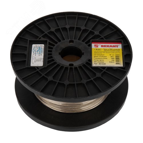 Трос стальной в ПВХ оплетке d=2.0 мм. прозрачный (200 м) REXANT 09-5320